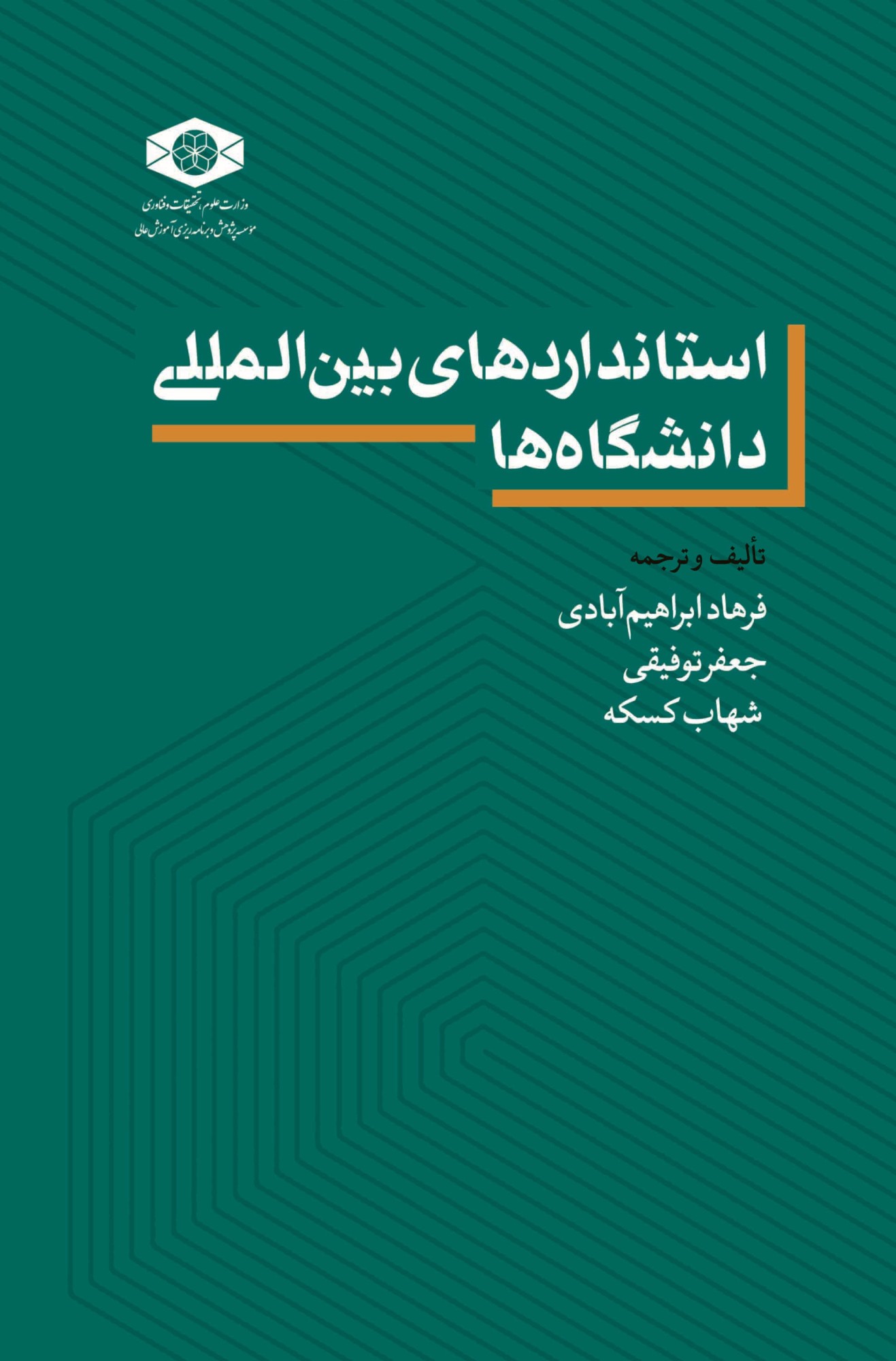 کتاب "استانداردهای بینالمللی دانشگاهها؛ ارزیابی و تضمین کیفیت دانشگاهها و دورههای دانشگاهی" تالیف و ترجمه دکتر فرهاد ابراهیمآبادی عضو هیئت علمی مؤسسه پژوهش و برنامهریزی آموزش عالی، دکتر جعفر توفیقی و دکتر شهاب کسکه از سوی انتشارات موسسه پژوهش و برنامه ریزی آموزش عالی به قیمت سیصد و هشت هزار تومان راهی بازار نشر شد.