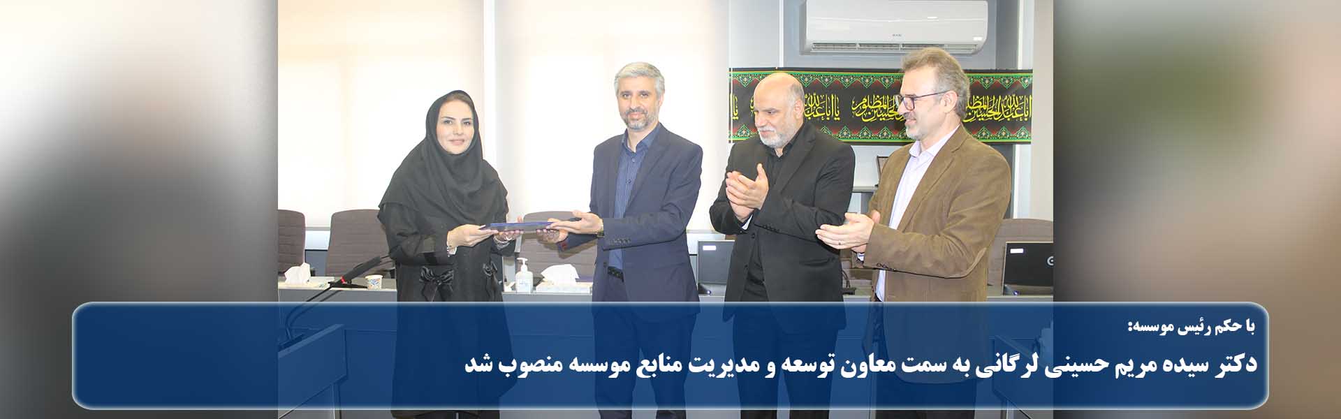 دکتر سیده مریم حسینی لرگانی به سمت معاون توسعه و مدیریت منابع موسسه منصوب شد